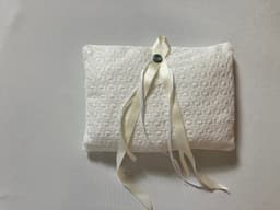 Un coussin porte-alliances raffiné, confectionné à la main en pièce unique, qui associe l’élégance intemporelle de la dentelle de Calais 100% coton à la douceur précieuse de la soie. Chaque détail est soigneusement pensé pour sublimer l’échange des alliances le jour de votre mariage, avec un accessoire à la fois délicat, poétique et exclusif.
