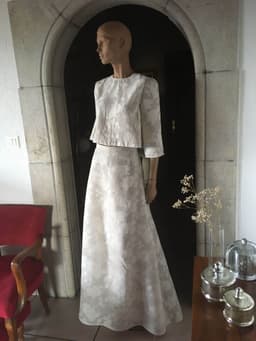 Succombez au charme de l’ensemble VALENTINA : une jupe longue en coton et lin qui flotte à chacun de vos pas, accompagnée d’un top délicatement ouvert dans le dos, noué d’un ruban de satin. Doublure 100% soie pour un confort absolu. Idéal pour des moments romantiques ou un brunch ensoleillé, cet ensemble respire la douceur et l’élégance naturelle.